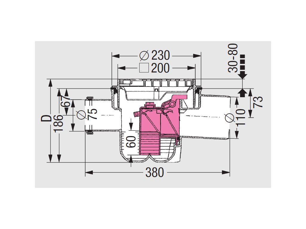 Pivničný vpust Univerzal č. 29121, bočný výtok DN 110 bez spätných klapiek
